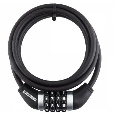 LOCK SUNLT CBL 8mmx6f COM COIL *BULK* w/BRACKET BK Heavy duty cable w/ tough coating. Resettable combination. Bulk packaging – perfect for in house use and add on sales bonuses. Bracket included.
