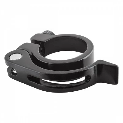 SEATPOST CLAMP SUNLT 31.8 SAFETY LOC BK Forged 6061 T6 alloy clamp. Safety lever clamping position follows clamp. Stops the QR lever from catching on things. Black anodized finish.