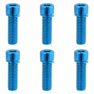 STEM BOLT TSC HOLLOW SETof6 BU Hollow stem bolts for dress up or replacement while saving weight in the process. Fits The Shadow Conspiracy stems and most other stems that use 8×1.25mm bolts. Available in multiple anodized colors.