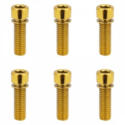 STEM BOLT TSC HOLLOW SETof6 GD Hollow stem bolts for dress up or replacement while saving weight in the process. Fits The Shadow Conspiracy stems and most other stems that use 8×1.25mm bolts. Available in multiple anodized colors.