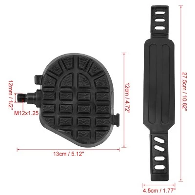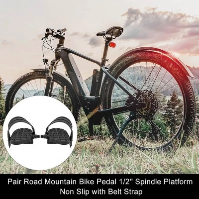- Product Name: Unique Bargains Pair Road Mountain Non Slip with Belt Strap Bike Pedals Black 5.12″x4.72″x2.09″ 2 Pcs