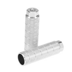 - Bike Foot Pegs SizeFit for Axle Diameter: 3/8 inch (9.5mm) Size: 100x28mm / 3.94″x1.10″(H*D) Color: Silver Tone Material: Aluminum Alloy