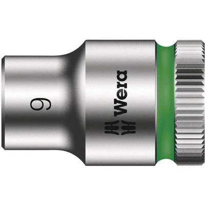 Manual and power tool socket insert (ISO 2725-Part 3) by Wera allows applications both in manual as well as power tools. “Take it easy” Tool Finder with color coding according to size – for simple and rapid accessing of the required tool. Featuring a good grip to allow easy pick-up even with oily hands. Ball stop groove, for hex head bolts and nuts; chrome vanadium steel, matt chrome-plated. 3/8 inch Zyklop socket. For manual and power tool operations (non-impact) . Knurling at lower end to enable easy gripping when used in manual applications. Equipped with ball stop groove. With Take it easy tool finder: color coding by size.