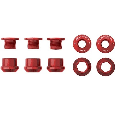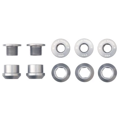 These 6mm long bolts are designed for single chainrings that have non-threaded standoffs. Uses a double hex head interface so you don’t have to use a chainring nut spanner. 6mm length. Made in the US out of 7075-T6 Aluminum. Has hex heads on both the bolt and nut for easy installation. Max torque of 7-8 Nm with light grease on threads only.