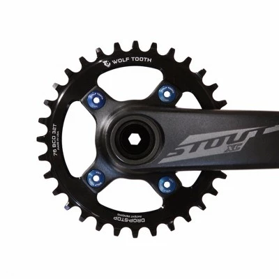 The Wolf Tooth 76 BCD chainrings work great on any 76 BCD spider or crankset. These will replace the more expensive rings used on SRAM XX1 spiders or other manufacturer’s spiders such as Cannondale. Also a great fit on the Specialized Stout crankset.Fits any 76 BCD crankset or spider. Drop-Stop technology. On Wolf Tooth’s patented wide/narrow chainring, the wide side of the tooth has maximum contact on the drive side which spreads the load and improves chainring life. The narrow side allows clearance for mud and debris which reduces friction. Alternating wide/narrow tooth pattern prevents chain derailment. Use standard M8 chainring bolts, not the M8.5 bolts included with XX1 spiders. Wolf Tooth’s patented Drop-Stop tooth design provides superior chain retention, wear life and mud-shedding capability.Compatibility:These rings fit any SRAM 76 BCD spider or Specialized Stout crankset. Here are instructions on how to measure your BCD. Threaded for standard M8 chainring bolts. For the XX1 spider, we recommend the 6mm bolts (or any short M8 chainring bolt). For the Stout crankset we recommend the 10mm bolts or the bolts that come with the crankset. If using a 9-speed drivetrain use a 10-speed chain (shifts and works well on a 9-speed drivetrain and fits the ring tighter for better chain retention).Recommendations:If you plan to ride in very muddy conditions, we recommend a chainguide or chainkeeper in addition to a clutch-type rear derailleur. Without these precautions, you may experience chaindrops and/or chainsuckRelated Products:Chainring boltsTech Specs:Weight: 30t 45g Material: 7075-T6 aluminumMade in the USA