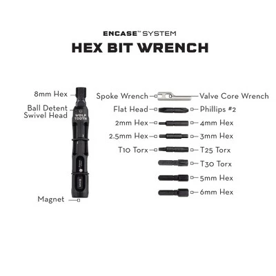 - 14 functions (spoke wrench; valve core wrench; flat head #3.5; Phillips #2; 2mm, 2.5mm, 3mm, 4mm, 5mm, 6mm, and 8mm hex; and T10, T25, and T30 Torx)