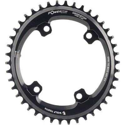 Designed to fit Shimano GRX 4-bolt 110 Asymmetric BCD cranksets. The design has an ovality of 10% and a timing of 112 degrees after top dead center which provide the beneifits of an oval ring such as greater rear wheel traction without the traditional downsides of oval rings. These rings feature Wolf Tooth’s Drop-Stop asymmetrical tooth design for the best in wear life, mud clearance, and chain retention.Compatible with Shimano GRX cranksets including RX600 and RX810. The Powertrac elliptical design means the diameter is that of a chainring 2t bigger. Drop-Stop chainrings are designed for use with 1×9, 1×10, 1×11 and 1×12 drivetrains. Compatible with all 10-, 11-, and 12-speed chains, with the exception of Shimano 12-speed chains. Shimano 12-speed chains require the use of Wolf Tooth’s Shimano 12-speed specific chainrings. If using a 9-speed drivetrain, use a 10-speed chain, which will provide a tighter fit for better chain retention. Use of a clutch-style rear derailleur is recommended. Made from 7075-T6 aluminum for long life.