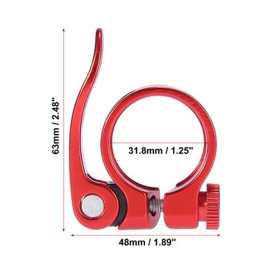 Features:31.8mm seat post clamp is suitable for 27.2mm-28.6mm seat post. Please check the size before you place an order.Easy and convenient to install and use.Can adjust the clamp on the way even without any other tools, make your cycling smoothly.Fit for MTB, mountain bike, road bike, and so on.Specifications:Material: Aluminium Alloy.Color: Red.Clamp Diameter: 31.8mm / 1.25″(D).Total Dimension: 63x48x18mm / 2.48″x1.89″x0.71″(L*W*H).Notes: The size measured by hand, so it may have a little 1-3 mm difference. The diameter of the bicycle seat post clamp depends on the size of the seat post. Please be sure to measure the actual outside diameter of the seat post.Package Included:2 x Seat Post Clamp.