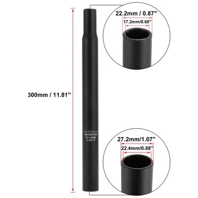 - Bicycle Seat Post Size: 300×27.2mm / 11.81″x1.07″(L*D), To fit frame seat post hole: 27.2mm / 1.07″, Length: 300mm / 11.81″, Tube thickness: 2.5mm / 0.1″