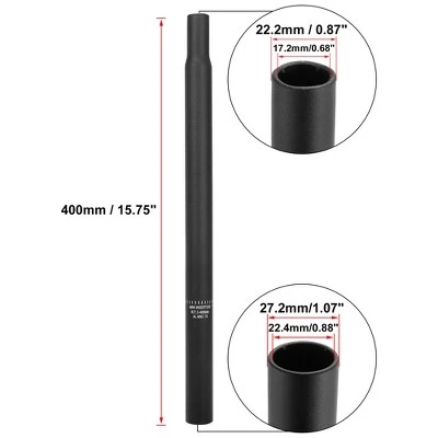 - Bicycle Seat Post Size: 400×27.2mm / 15.75″x1.07″(L*D), To fit frame seat post hole: 27.2mm / 1.07″, Length: 400mm / 15.75″, Tube thickness: 2.5mm / 0.1″