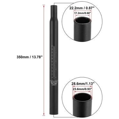 - Bicycle Seat Post Size: 350×28.6mm / 13.78″x1.13″(L*D), To fit frame seat post hole: 28.6mm / 1.13″, Length: 350mm / 13.78″, Tube thickness: 2.5mm / 0.1″