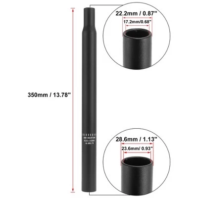 - Bicycle Seat Post Size: 350×28.6mm / 13.78″x1.13″(L*D), To fit frame seat post hole: 28.6mm / 1.13″, Length: 350mm / 13.78″, Tube thickness: 2.5mm / 0.1″