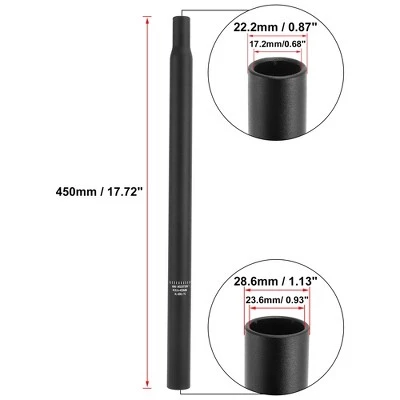 - Bicycle Seat Post Size: 450×28.6mm / 17.72″x1.13″(L*D), To fit frame seat post hole: 28.6mm / 1.13″, Length: 450mm / 17.72″, Tube thickness: 2.5mm / 0.1″