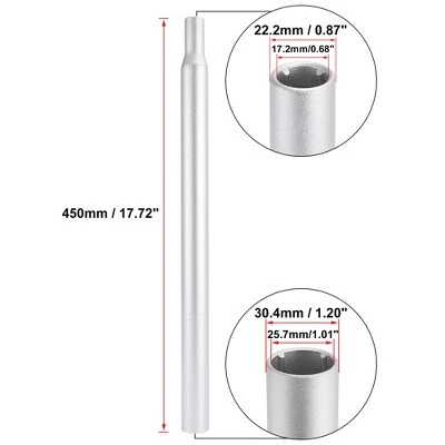 - Bicycle Seat Post Size: 450×30.4mm / 17.72″x1.20″(L*D), To fit frame seat post hole: 30.4mm / 1.2″, Length: 450mm / 17.72″, Tube thickness: 2.5mm / 0.1″