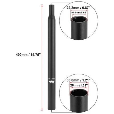 - Bicycle Seat Post Size: 400×30.8mm / 15.75″x1.21″(L*D), To fit frame seat post hole: 30.8mm / 1.21″, Length: 400mm / 15.75″, Tube thickness: 2.5mm / 0.1″