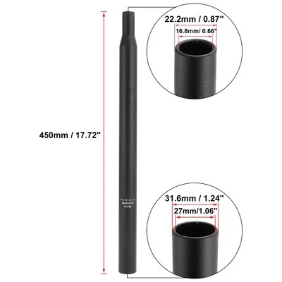 - Bicycle Seat Post Size: 450×31.6mm / 17.72″x1.24″(L*D), To fit frame seat post hole: 31.6mm / 1.24″, Length: 450mm / 17.72″, Tube thickness: 2.5mm / 0.1″