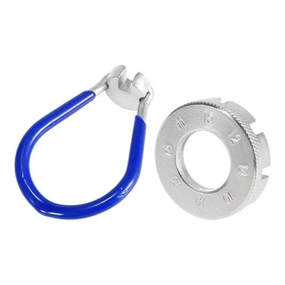 Bicycle Wheel Spoke Wrench Bike Cycling Spanner Repair Tool Set Silver Tone Metal.Feature:The Bicycle spoke wrench is used to adjust the tightness of bicycle spokes, can correct and prevent wheel deformation of the rim.Small and portable, so it can easily be carried with you or on your bike.The silver tone bicycle spoke wrench packs all of the common sizes into just one wrench.The size mark on the tool is obvious. It is easy to identify which size of the groove is used.The silver tone bicycle spoke wrench is suitable for the size of 10/11/12/13/14/15 gauge. 10=5.2mm=0.2″, 11=4.5mm=0.18″, 12=4.2mm=0.17″, 13=3.9mm=0.15″, 14=3.6mm=0.14″, 15=3.4mm=0.13″The blue bicycle spoke wrench handle shape is covered with a rubber ring for easy grip.Tire levers help repair flat bicycle tires. Hook the spokes easily.Specification:Material: Metal;Color: Silver Tone, Blue;Silver Tone Wheel Spoke Wrench Size: 11x20x40mm / 0.43″x0.79″x1.57″(H*ID*OD);Blue Wheel Spoke Wrench Size: 51.5x36x13.3mm / 2.03″x1.42″x0.52″(L*W*H);Blue Wheel Spoke Wrench Hole Diameter: 3.7mm / 0.15″;Tire Lever Size: 120×11.5x5mm / 4.72″x0.45″x0.20″(L*W*T).Note:Please allow 1-3mm error due to manual measurement.Package Included:1 x Silver Tone Bicycle Wheel Spoke Wrench;1 x Blue Bicycle Wheel Spoke Wrench;3 x Tire Lever.