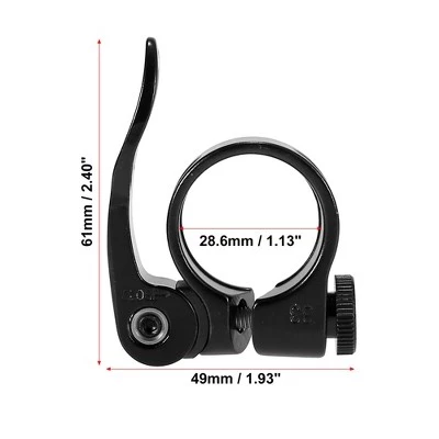 Features:28.6mm seat post clamp is suitable for 25.4mm seat post. Please check the size before you place an order.Easy and convenient to install and use.Can adjust the clamp on the way even without any other tools, make your cycling smoothly.Fit for MTB, mountain bike, road bike, and so on.Specifications:Material: Aluminium Alloy.Color: Black.Clamp Diameter: 28.6mm / 1.13″(D).Total Dimension: 61x49x16mm / 2.40″x1.93″x0.63″(L*W*H).Notes: The size measured by hand, so it may have a little 1-3 mm difference. The diameter of the bicycle seat post clamp depends on the size of the seat post. Please be sure to measure the actual outside diameter of the seat post.Package Included:1 x Seat Post Clamp.